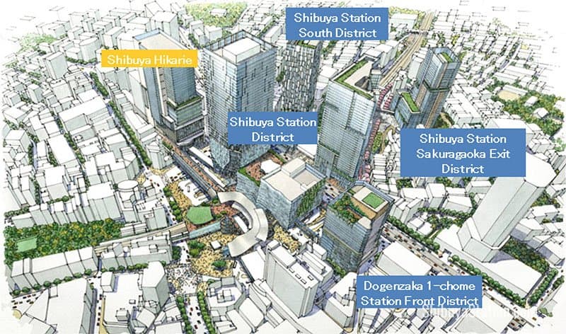 Bảy tòa cao tốc sẽ là các phần trong dự án Shibuya Station Area Redevelopment này. Sáu tòa sẽ dùng làm văn phòng và một tòa sẽ là cao ốc 32 tầng. Kế hoạch cũng bao gồm việc tái phát triển “Shibuya River”, một lối đi nhỏ dành cho người đi bộ cũng sẽ xuất hiện thêm nhiều cửa hàng mới và công viên khi khánh thành vào đầu năm 2018.