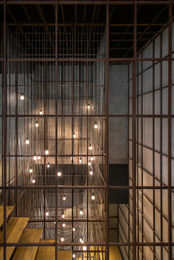 Dựa trên mô hình giá phơi mì truyền thống, Lukstudio đã mang đến một không gian mới cho nhà hàng Longxiaobao ở Bắc Kinh với nhiều dây kẽm và khung treo có thiết kế như giá phơi mì.