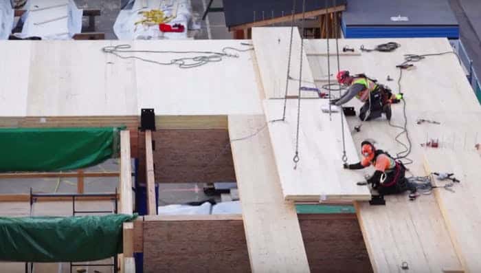 Michael Green đã có bài phát biểu được đăng tải trên trang TED Talk vào năm 2013 về ý tưởng xây nhà bằng gỗ. Trước toàn thể khách mời, ông phát biểu rằng Công ty của ông đã hoàn thành ý tưởng xây dựng Trung tâm thiết kế và cải tiến Gỗ Wood Innovation and Design Center tại trường Đại học Northern British Colombia. Công trình 90 tầng này là  cao ốc bằng gỗ cao nhất tại Bắc Mỹ. Nó được xây dựng từ những bản gỗ lớn chắc chắn đã được định hình và ép lại với nhau bằng một loại keo kỹ thuật đặc biệt nhằm gia cố, đồng bộ và tăng độ bền. Những kiến trúc sư đang nghiên cứu về giới hạn số tầng để xây dựng các tòa nhà này. Theo báo cáo từ công ty kiến trúc Skidmore, Owings và Merrill, về mặt kỹ thuật, xây dựng tòa cao ốc 42 tầng bằng gỗ là hoàn toàn “khả khi”.