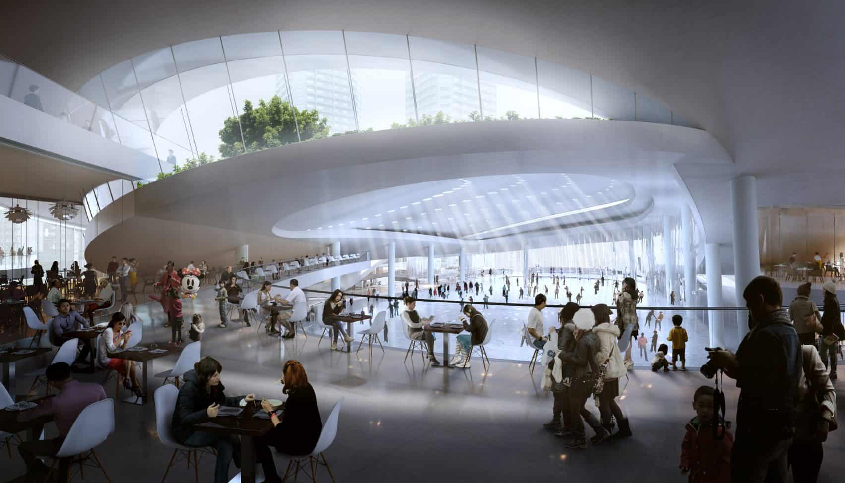 Một sân trượt băng chuẩn Olympic sẽ nằm ở trung tâm tòa nhà với các cửa hàng và quán cà phê được bố trí theo vòng tròn bao bọc xung quanh.