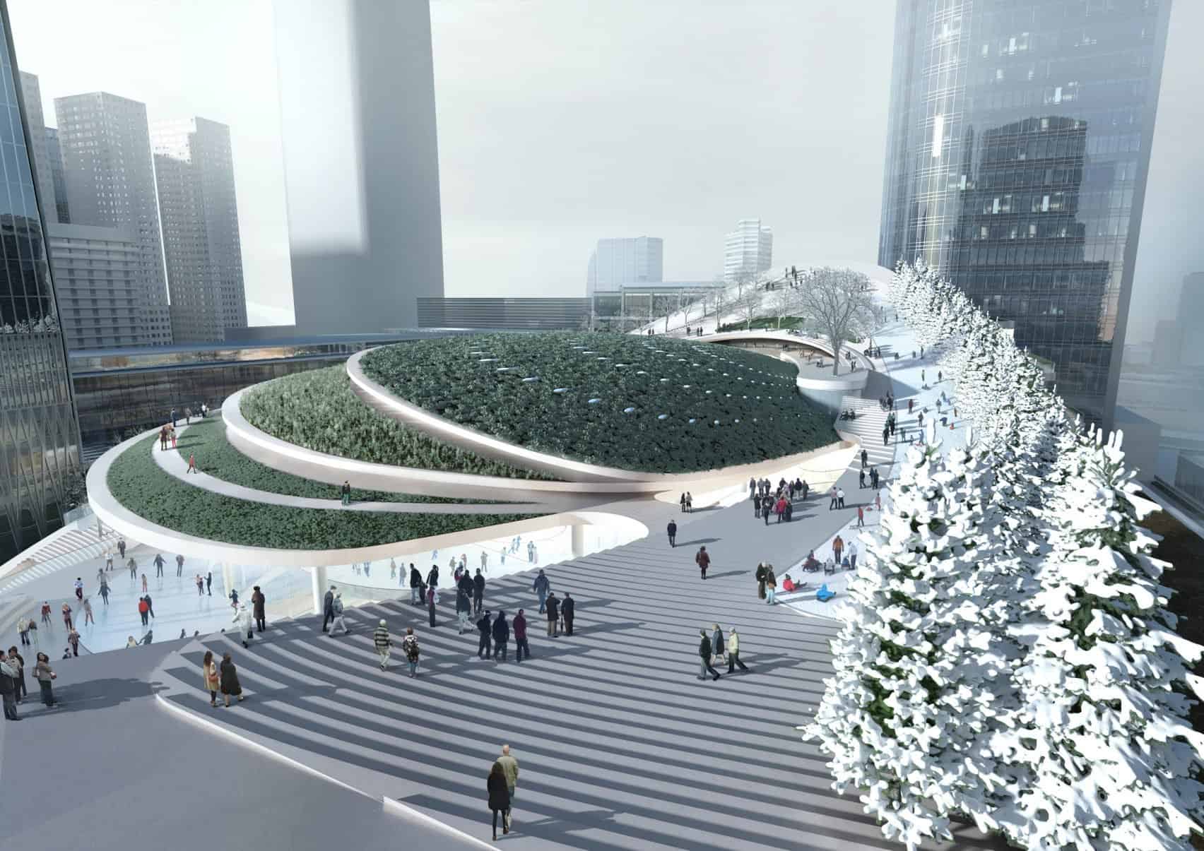 Bromberg đề kiến sân thượng của tòa nhà sẽ có cấu trúc uốn lượn hình elip với tên gọi là Civic Green.