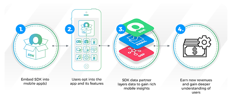 Dữ liệu từ ứng dụng có thể chuyển thành dòng lợi nhuận mới. Ứng dụng di động ngày nay tạo ra rất nhiều giá trị xoay quanh về hành động của người dùng hiện nay, do đó mang lại cơ hội béo bở cho các developer kiếm tiền từ dữ liệu thu được từ ứng dụng khi hợp tác với một đối tác data SDK.